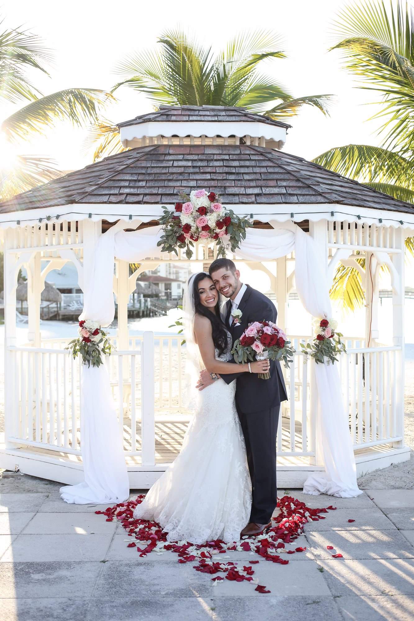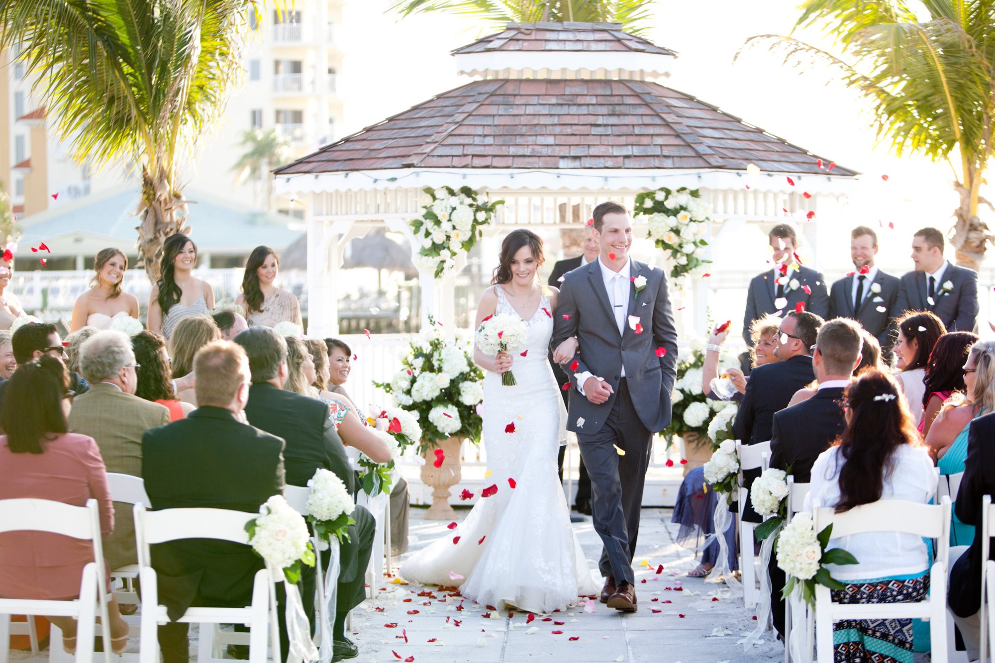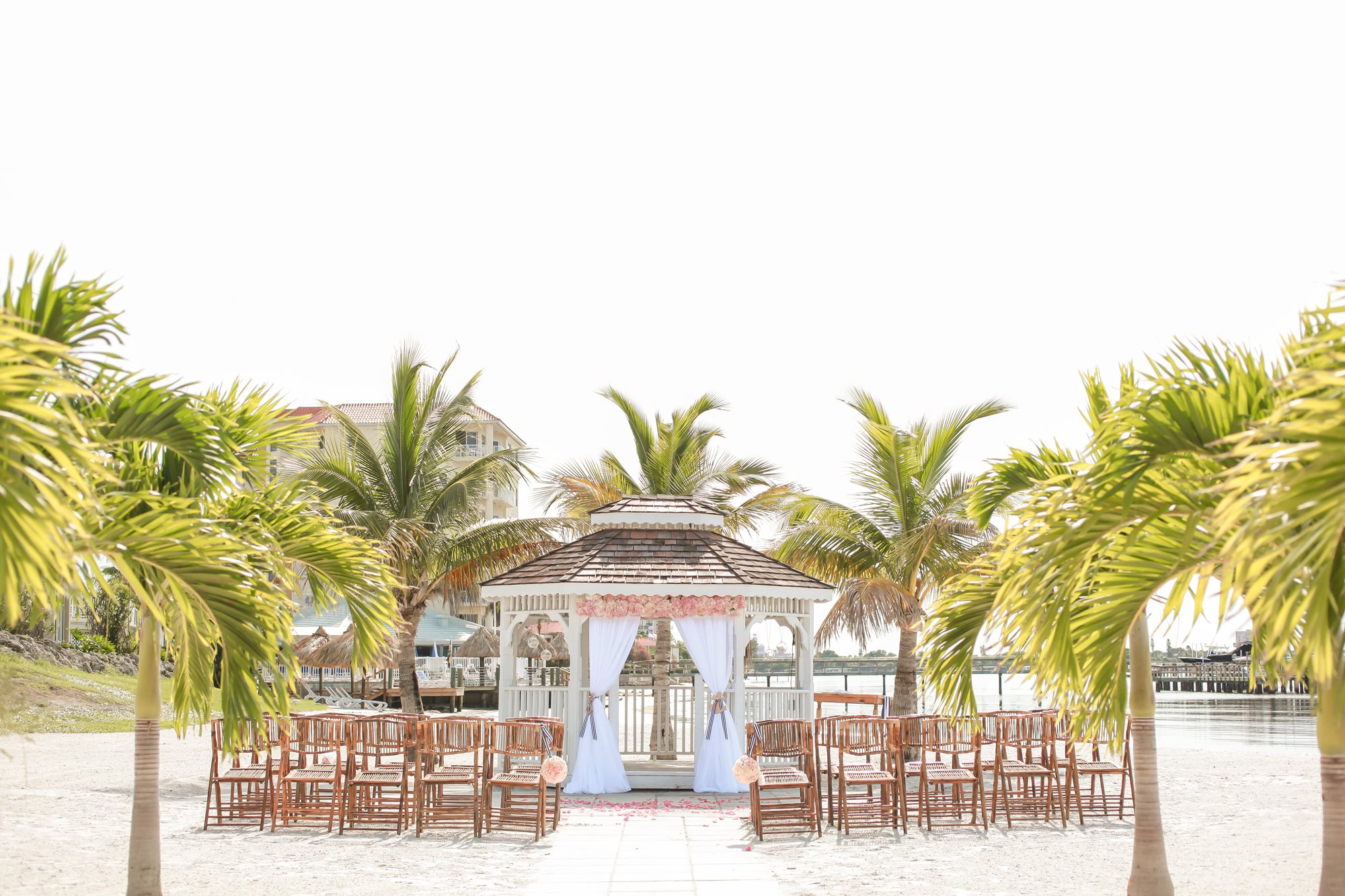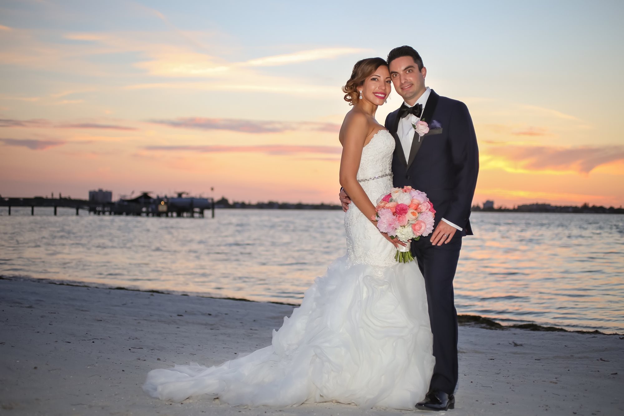 With spectacular panoramic views of Boca Ciega Bay and our glittering private beach and gazebo, caressed by a tropical breeze; Isla Del Sol is the picture perfect place for an intimate and private outdoor wedding ceremony. Or if you prefer, we can set up one of our unique indoor spaces overlooking the blue-green waters of the bay to be your “chapel” for the day. As we are minutes away from the gulf beaches, there are many quality hotels for your guests to enjoy making it easy for them to make a grand Florida vacation out of your wedding weekend. Indulge yourself with our pampered private club service and unmatched culinary delights from our award-winning Chef. Our wedding packages include the following amenities in addition to the club catered food and beverage: