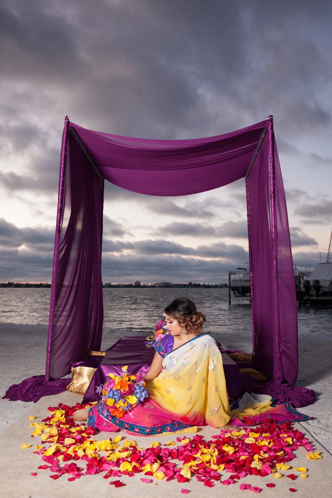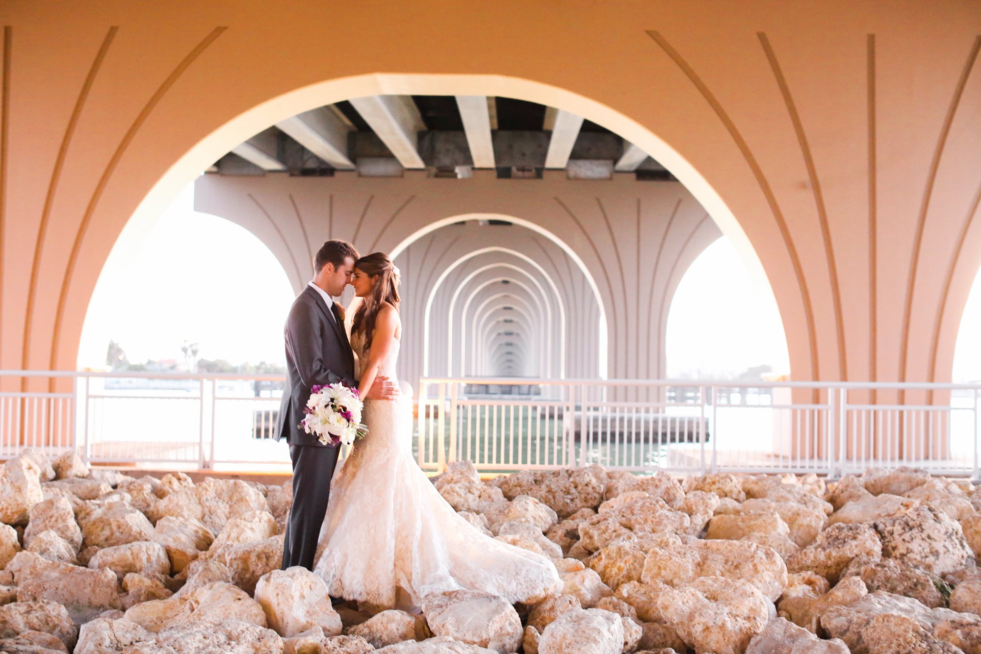 With spectacular panoramic views of Boca Ciega Bay and our glittering private beach and gazebo, caressed by a tropical breeze; Isla Del Sol is the picture perfect place for an intimate and private outdoor wedding ceremony. Or if you prefer, we can set up one of our unique indoor spaces overlooking the blue-green waters of the bay to be your “chapel” for the day. As we are minutes away from the gulf beaches, there are many quality hotels for your guests to enjoy making it easy for them to make a grand Florida vacation out of your wedding weekend. Indulge yourself with our pampered private club service and unmatched culinary delights from our award-winning Chef. Our wedding packages include the following amenities in addition to the club catered food and beverage: